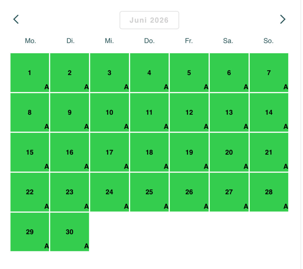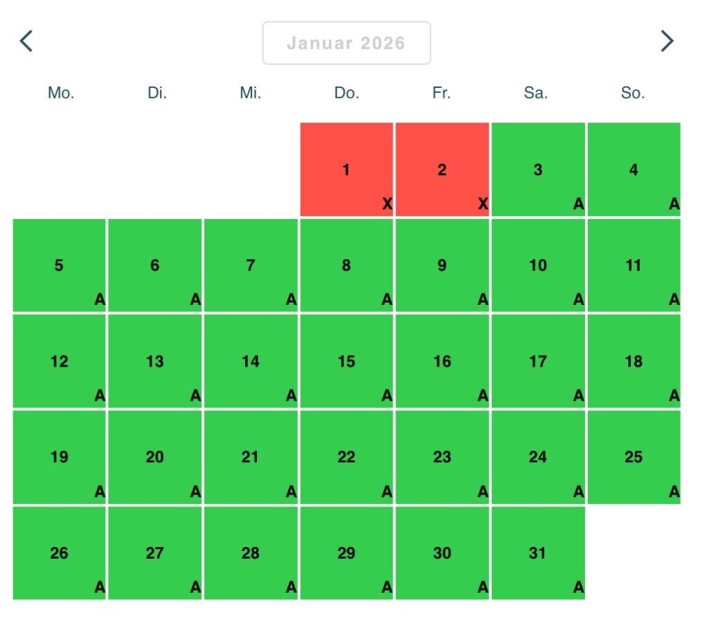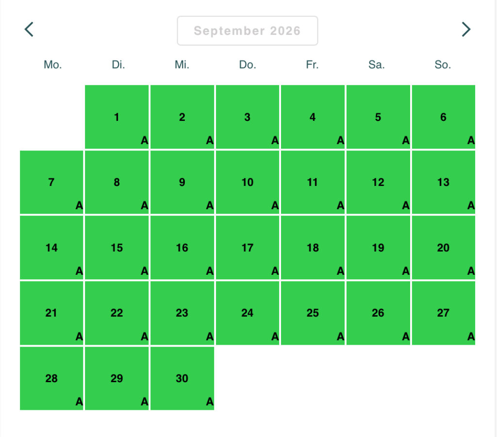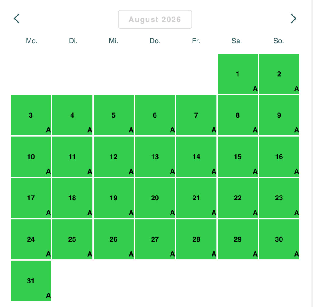 Abreisen sind am Mo und Di leider nur eingeschränkt möglich. Bei einer Preisanfrage oder Reservierung klicken Sie bitte auf den nachfolgenden roten Button und teilen Sie uns bitte die gewünschte Reisezeit und die Personenanzahl mit.