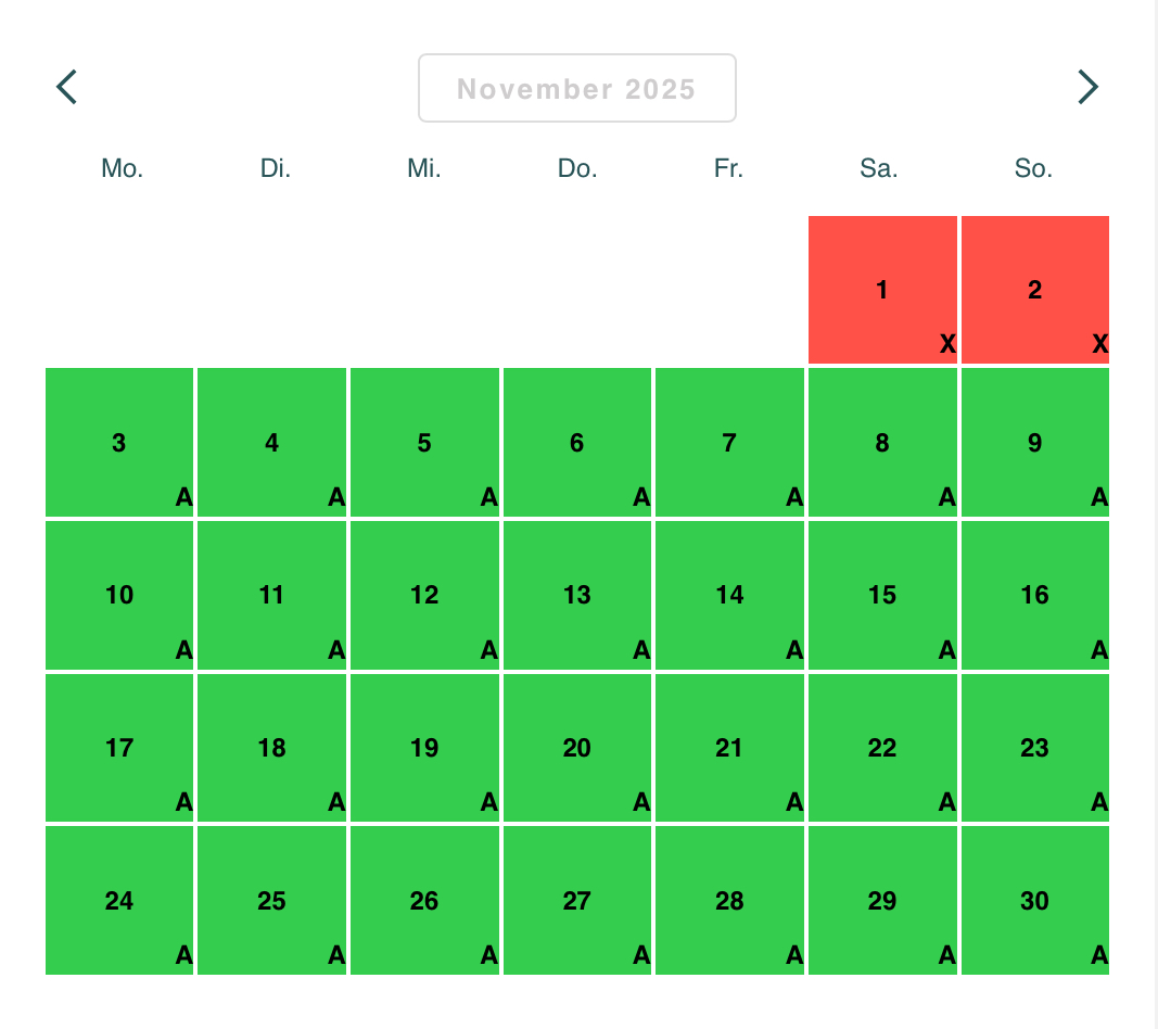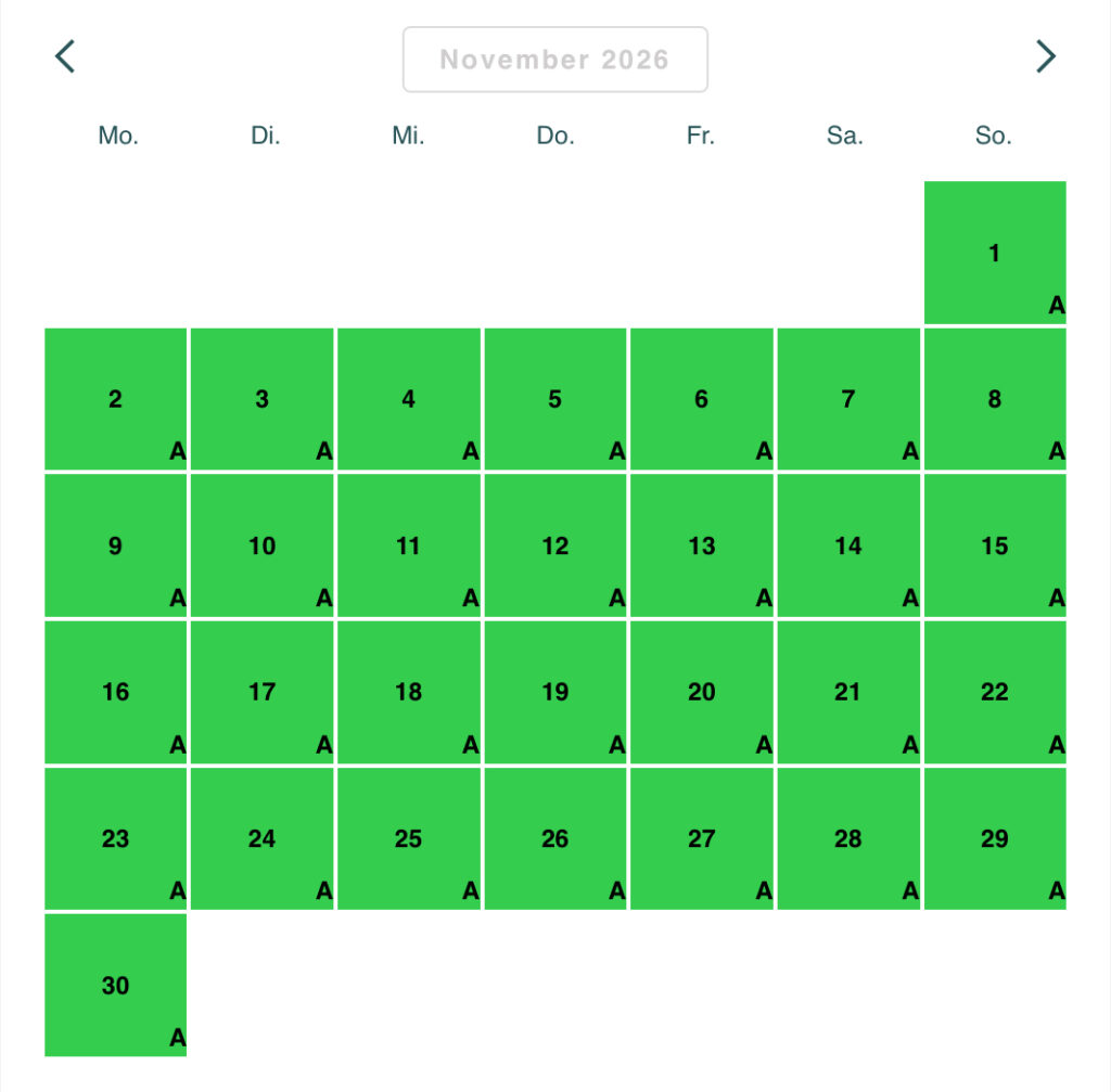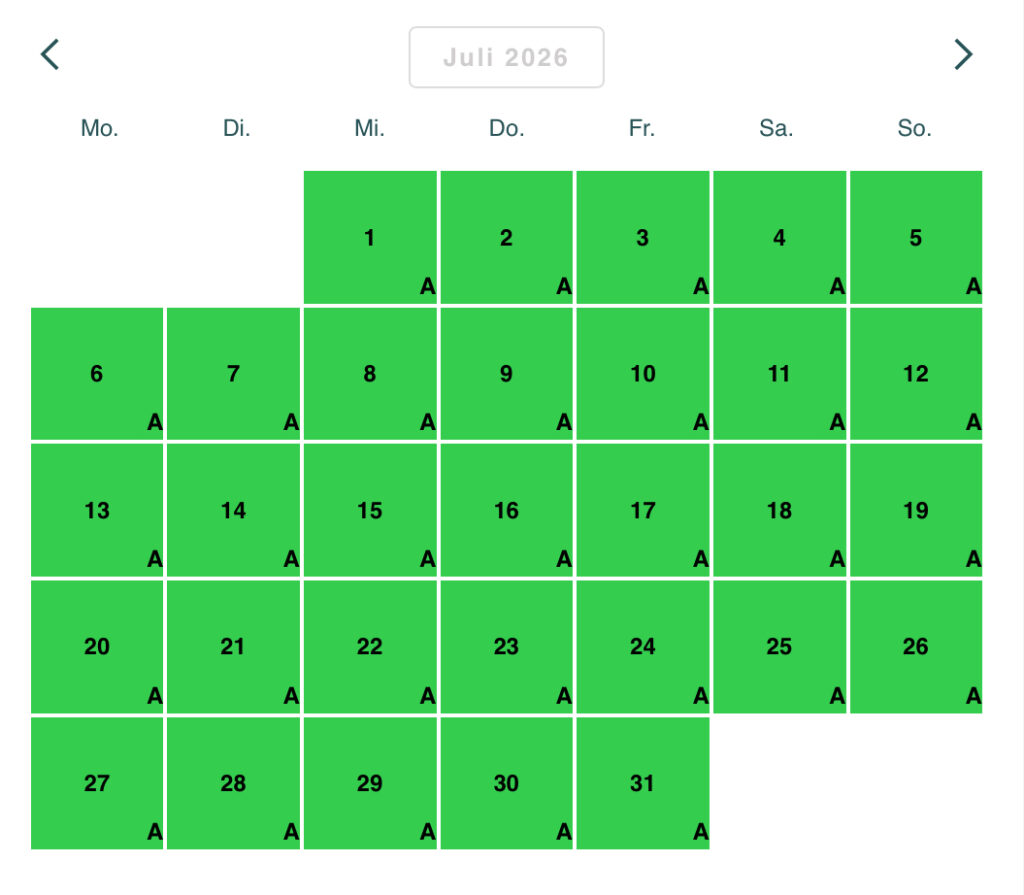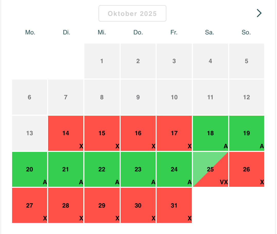 Abreisen sind am Mo und Di leider nur eingeschränkt möglich. Bei einer Preisanfrage oder Reservierung klicken Sie bitte auf den nachfolgenden roten Button und teilen Sie uns bitte die gewünschte Reisezeit und die Personenanzahl mit.